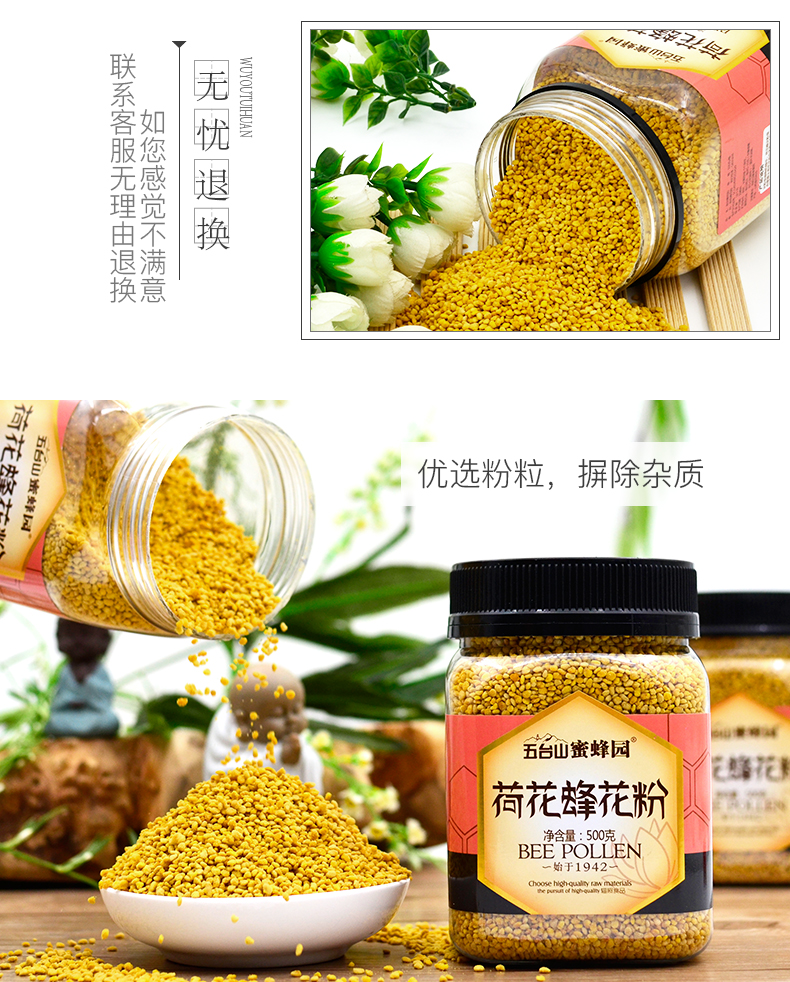 五臺(tái)山蜜蜂園荷花蜂花粉500克